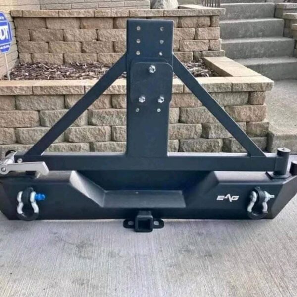 EAG rear bumper with a tire carrier for a Jeep Wrangler JK.