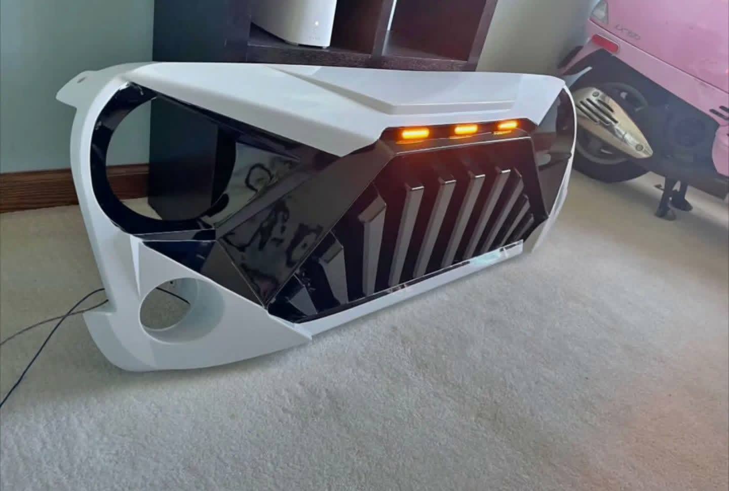 An aftermarket Goliath grille designed for the Jeep Wrangler JL and Gladiator JT models.