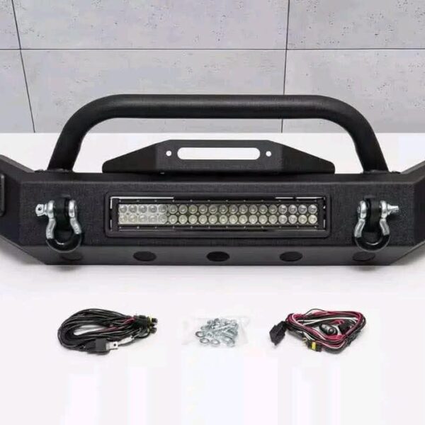 A heavy-duty, off-road front bumper designed for a Jeep Wrangler JK.