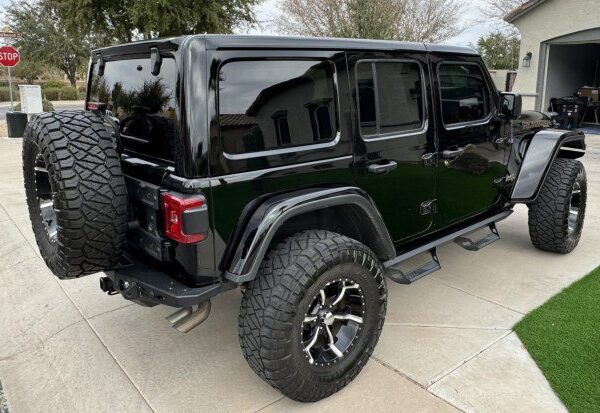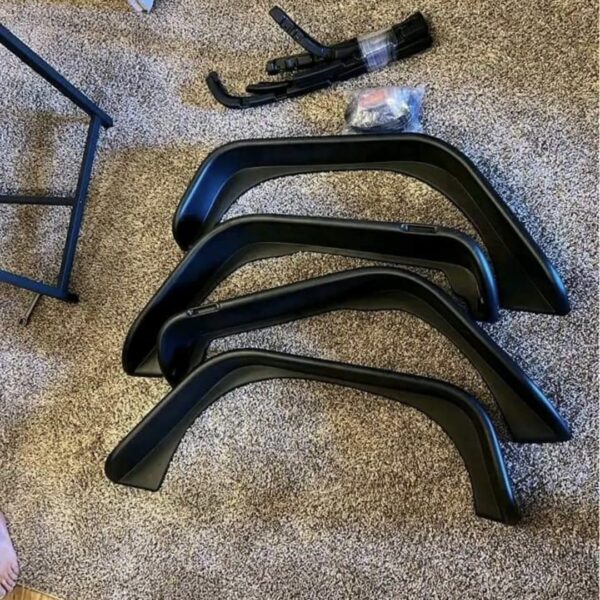 A set of black fender flares for a Jeep Wrangler models