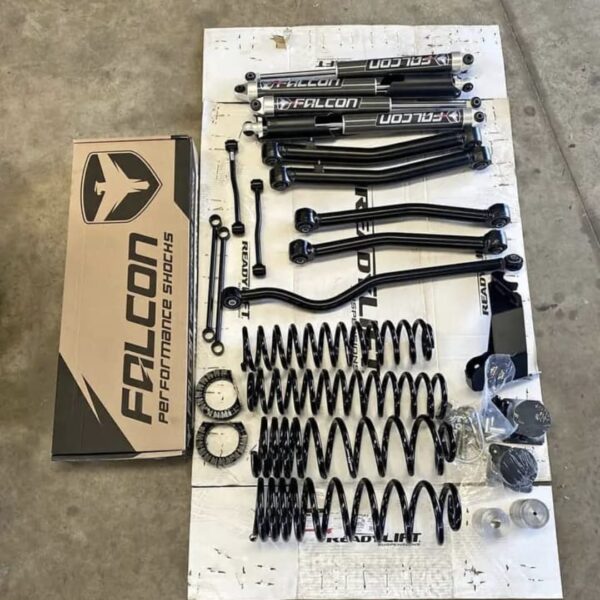 A ReadyLift Terrain Flex lift kit with Falcon 2.1 shocks.