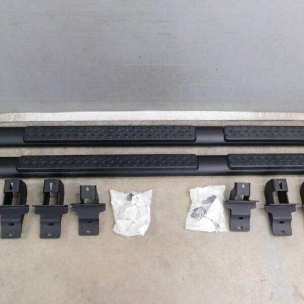 A set of black tubular side steps designed for a 2007-2018 Jeep Wrangler JK.